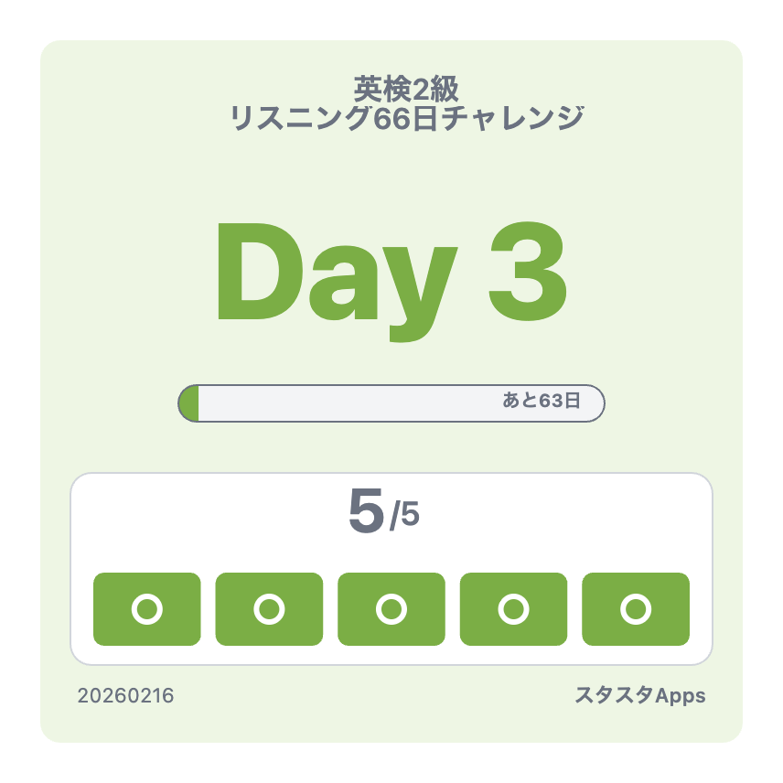 日替わり5問で、毎日コツコツ本番形式のリスニング練習。